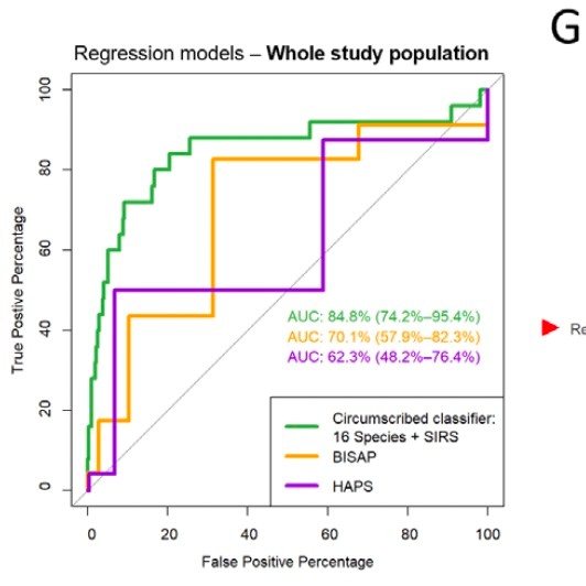 Figure 2 : la modification du microbiome rectal associé au SIRS est un meilleur facteur prédictif de sévérité que le BISAP et le HAPS.